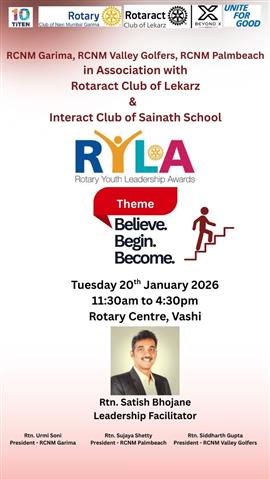 RCNM Garima has organised RYLA for interactors and Rotaractors, whe. . .